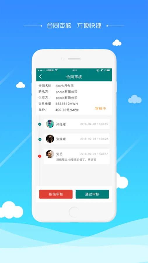 1. 合同管理:创建售电合同、购电合同,审核流程设置,