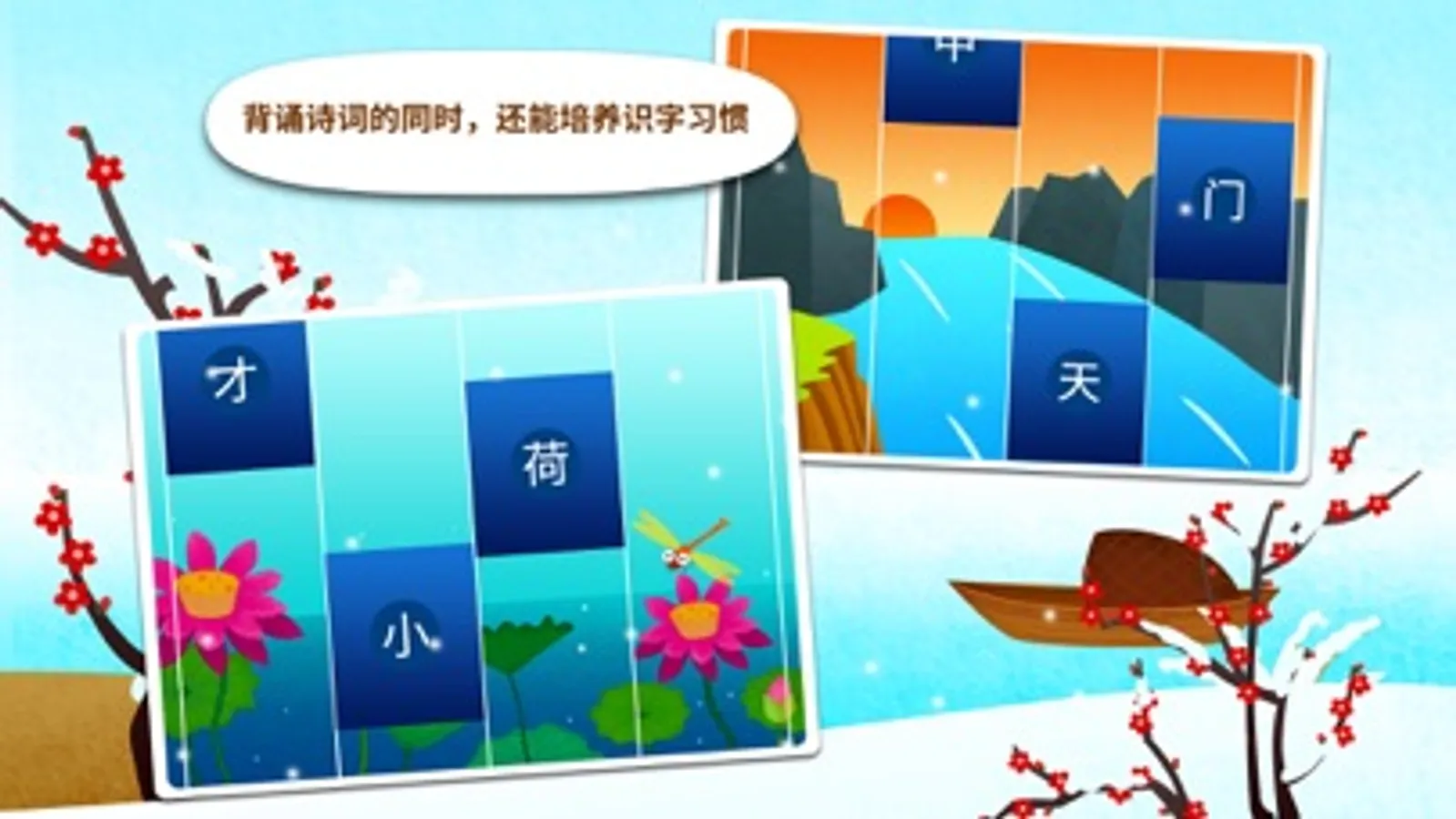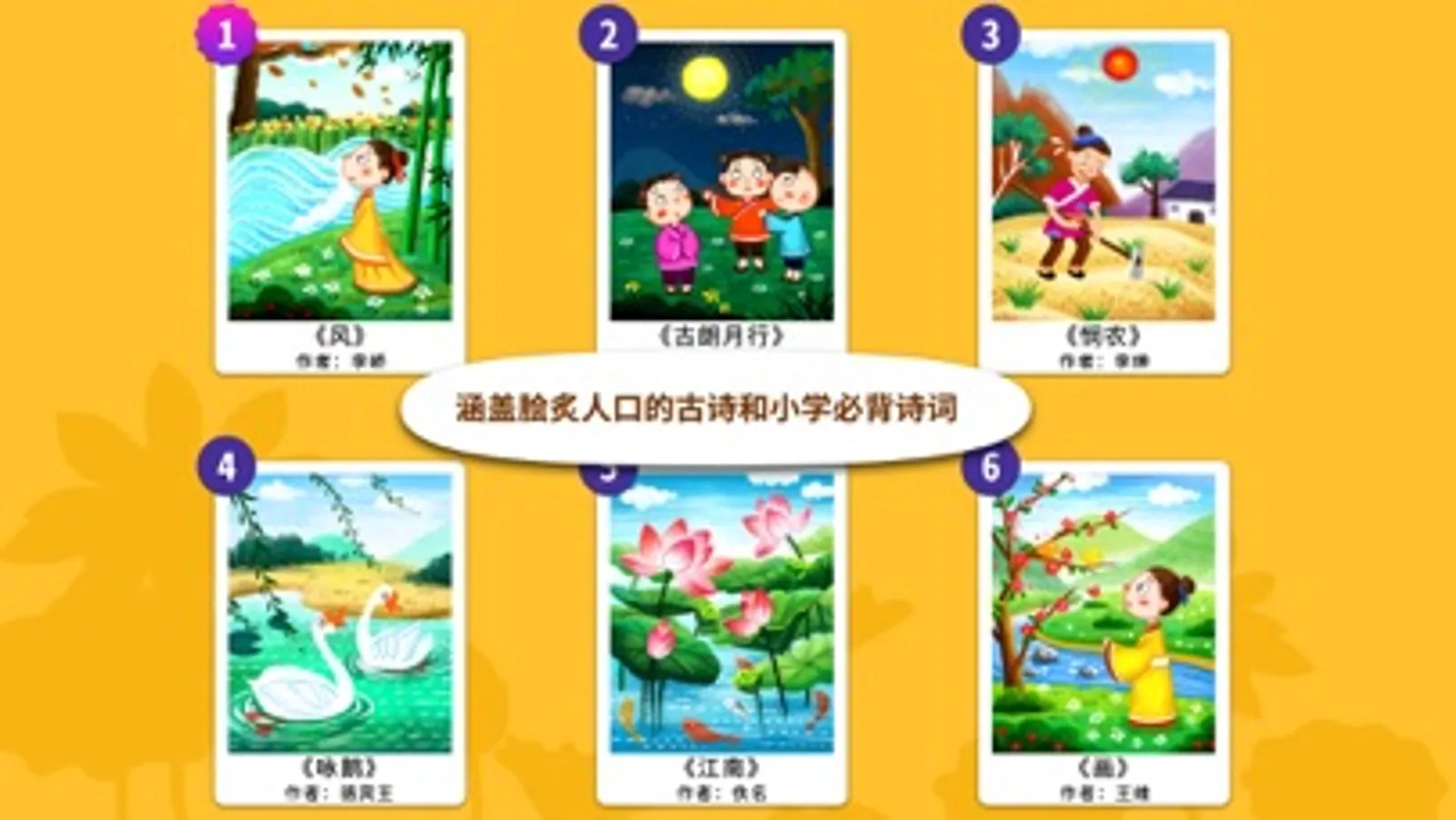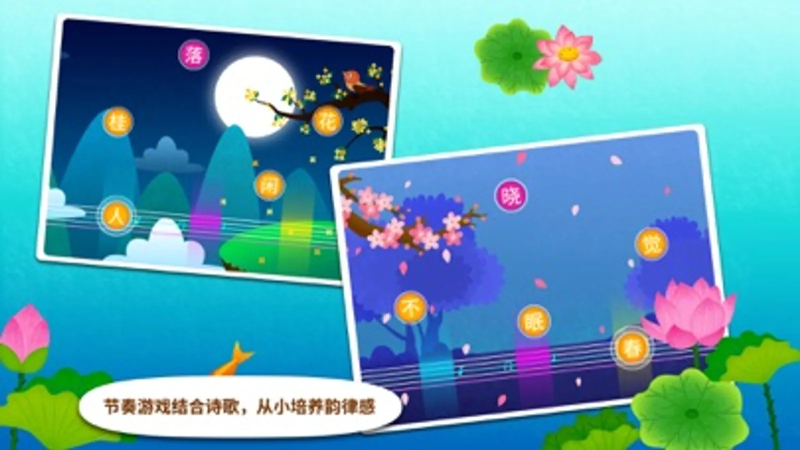 - 通过优美的音乐配合诗词节奏游戏,在学习诗词的同时也能提升孩子的韵律感,一举两得。