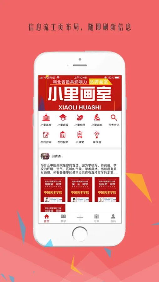 小里画室APP,旨在增强学员与老师和家长之间的交流学习,以及为师生搭建网上互动桥梁。APP增加了学习圈、在线课程、提供线上教学以及离线教学模式,并提供多种班级选择。小里画室APP为家长提供了解我校的先进教学理念以及强大的师资力量的功能,以及为家长和学生提供在线咨询等功能,还可以通过APP能及时了解最新的报考信息,为学生解决升学问题。