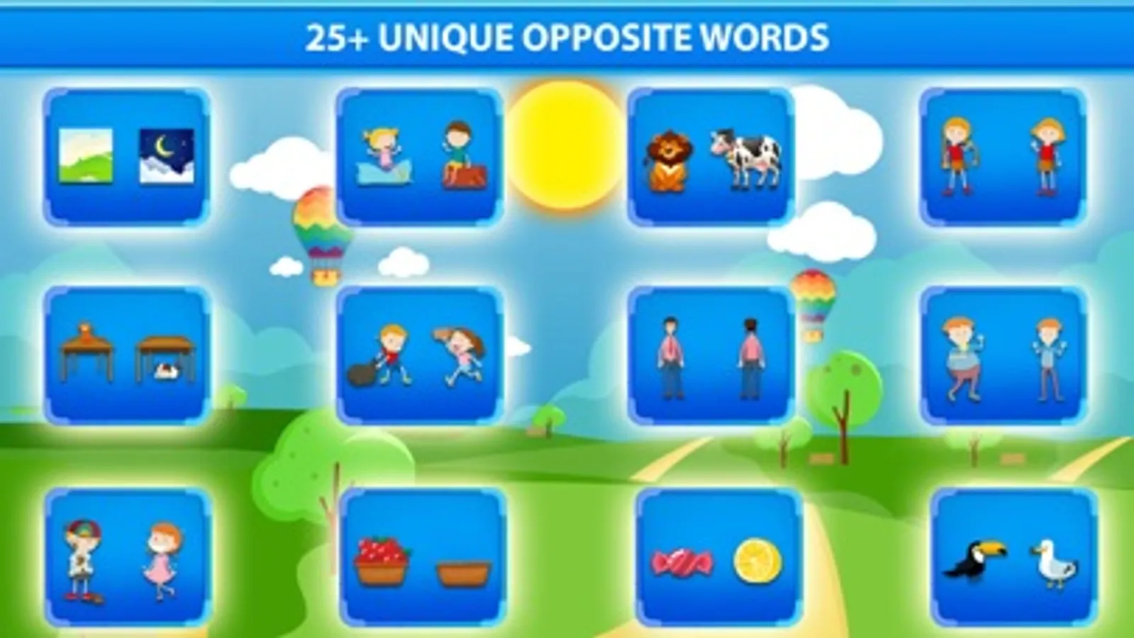 Learn Opposites words - simple & playful tool for helping kids build language skills.
