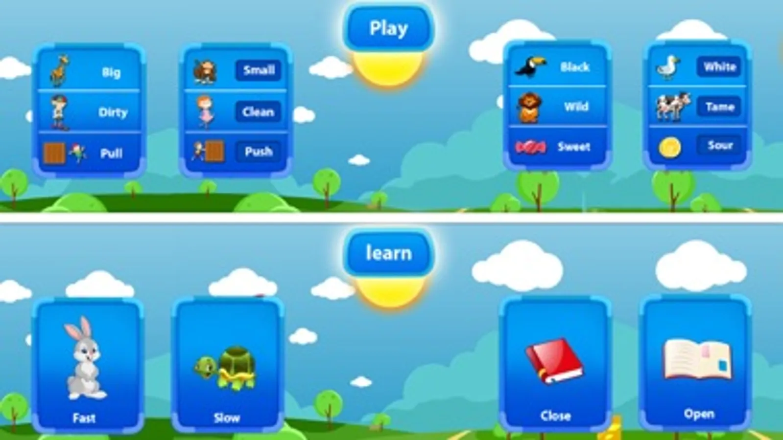 Opposites Words For Kids gives us two Modes "Learn Mode" and “Play Mode"... Learn Mode helps your kids to learn the magic words. Play Mode test your kids skills on identification and memory.
