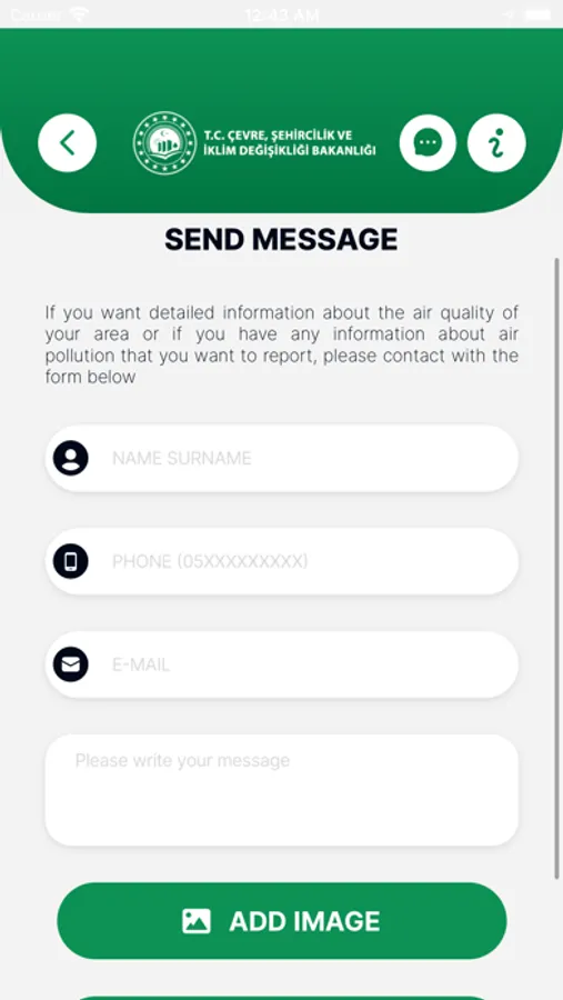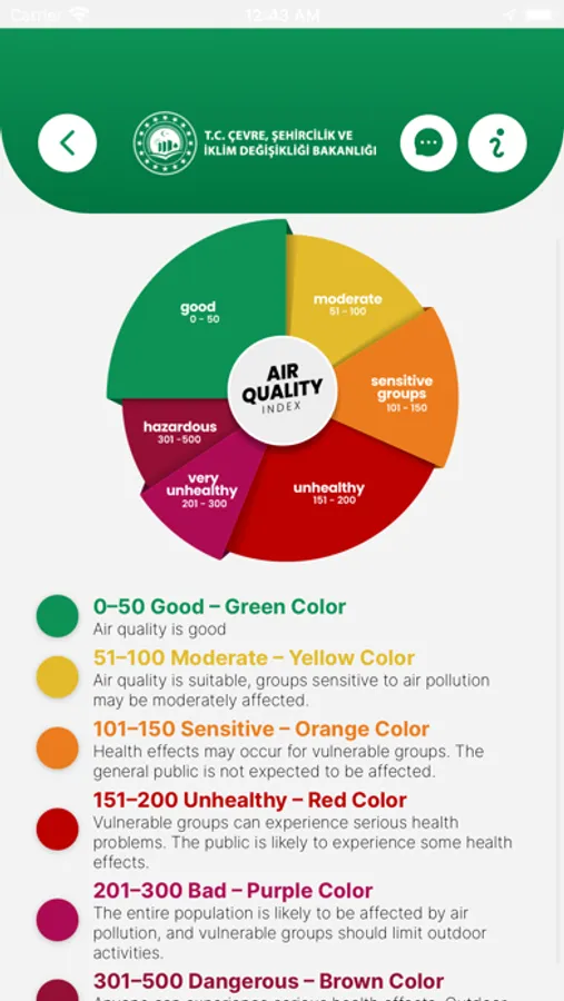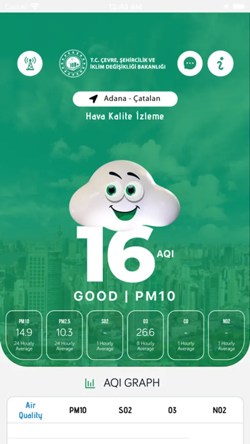 Soluduğunuz havanın kalitesi artık cebinizde. T.C. Çevre ve Şehircilik Bakanlığı tarafından kurulan “Ulusal Hava Kalitesi İzleme Ağı”nda yer alan hava kalitesi ölçüm istasyonlarından elde edilen ölçüm sonuçlarının, vatandaşlarımızın bilgisine sunulması ve yapacakları aktiviteler için öneri alabilecekleri bir uygulamadır.