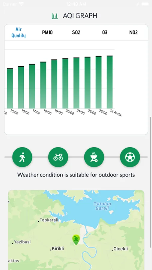 - Güncel hava kalitesine göre aktivite önerilerinin görüntülenmesi,