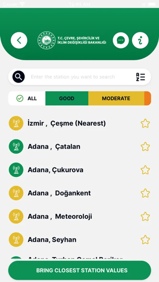 - Konumunuza en yakın olan ölçüm istasyonunun ölçüm değerlerinin öğrenilmesi,