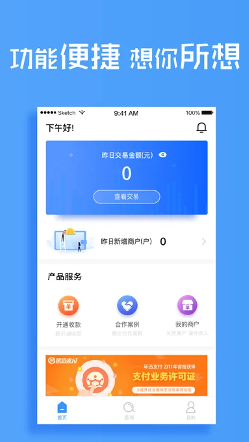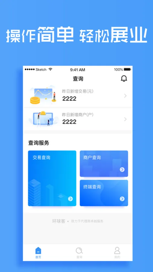 环球客APP是一款代理商展业的软件,他可以帮助代理商快速、便捷查看商户进度,商户售后维护等功能,是代理商在市场上展业的好帮手。