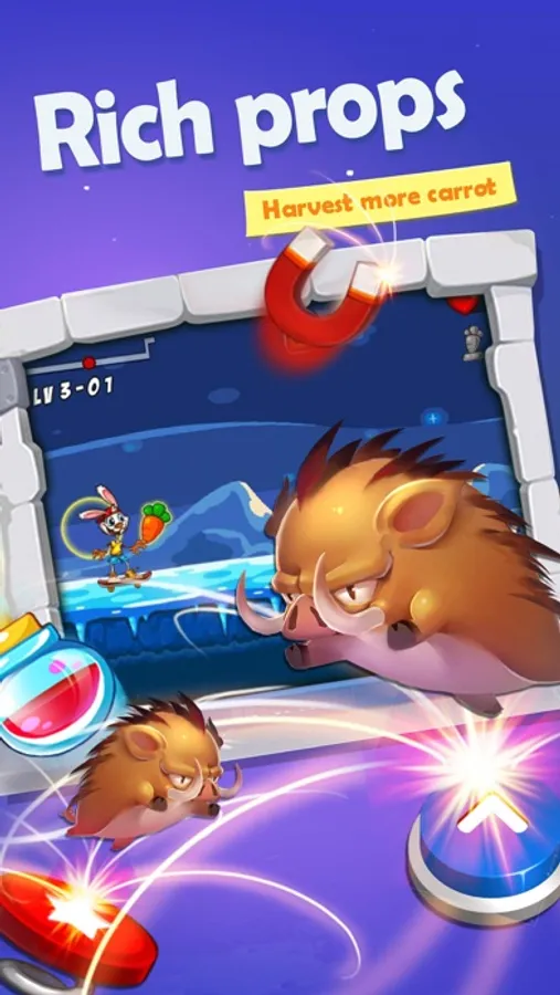 Grab the board and get ready for a kick-flippin' adventure now. Bunny wants to become a hollywood star like Kardashian so he needs the carrots to grow more attractive. And it is your job to guide Bunny to shred through the obstacles to collect all the carrots. The more carrots you collect the more point you score!