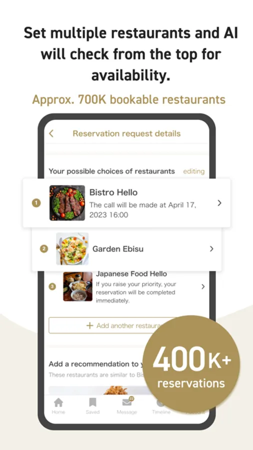 ■ AI makes phone calls in order of preference for multiple desired reservations ■