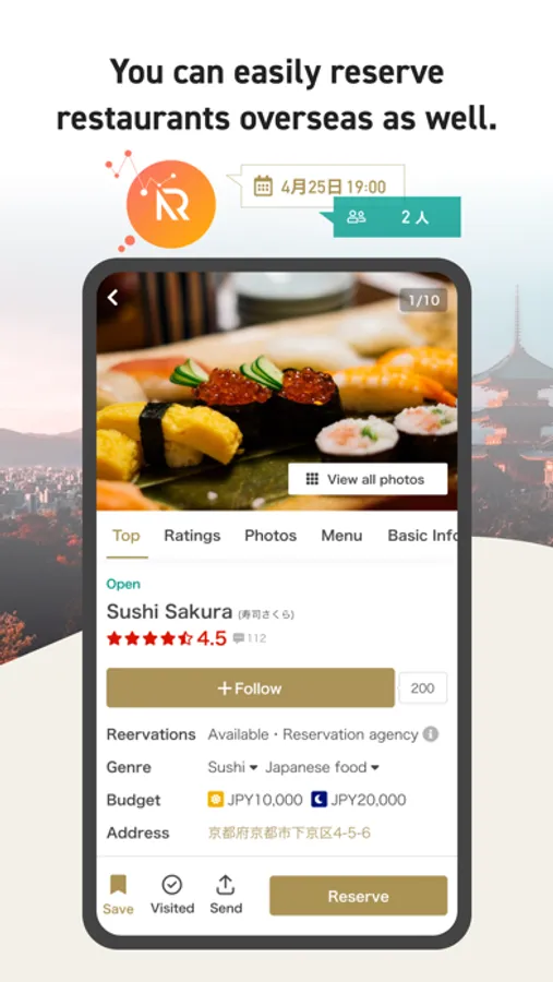 AutoReserve is the number one app for restaurant reservations! Even at places where online reservations are not available, AutoReserve is a gourmet app that uses AI to make phone calls on your behalf. You can also make reservations at restaurants overseas without speaking local language. AutoReserve also has a full search function, so you can find a restaurant and make a reservation with just one app.