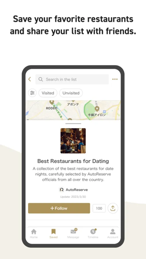 You can create lists to save restaurants you have visited or want to visit according to your preferences. You can also share your lists with friends or let more people see them.