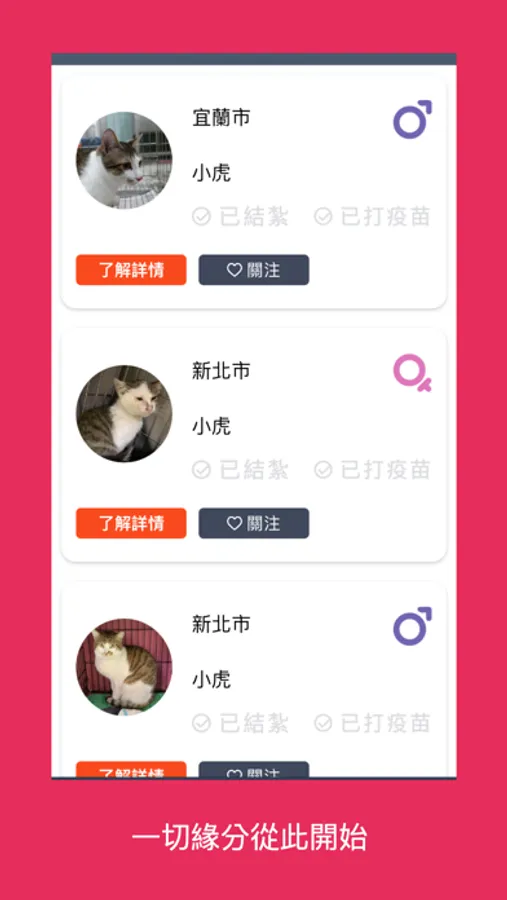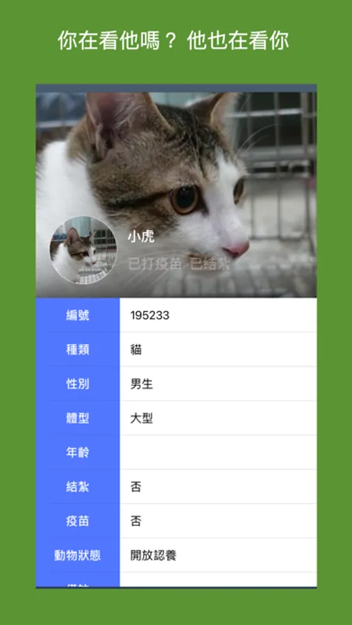 種類、毛色、體型、年齡、區域、是否結紮、是否有疫苗
