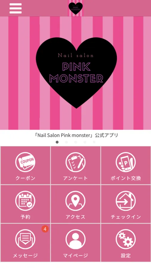 このアプリでは、Pink monsterの最新情報の受け取りや便利な機能を使う事ができます。