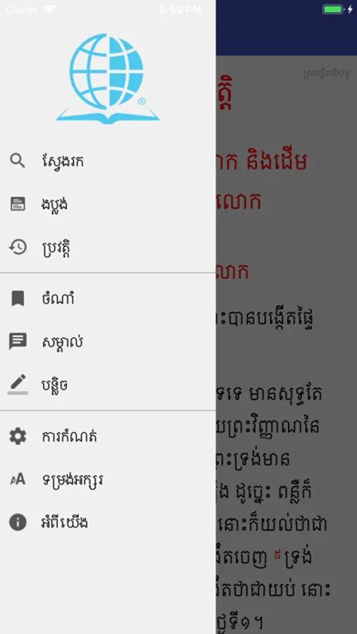 The Khmer Bible App was created by the Bible Society in Cambodia the full member of the United Bible Societies, that you can access and read all of our Khmer versions Bible in one app with dual panes for reading two versions at the same time.