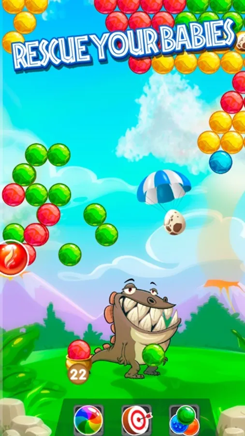 Welcome to the happy but stressful life of silly T-Rex daddy, their babies have been lost across the Jurassic bubble world, blow up and blast the balls colored to reach them. Do not worry, the eggs will not break when falling, this was the dino who invented the parachutes in the Jurassic kingdom.