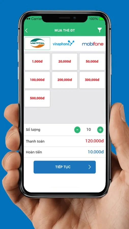 EMPay ứng dụng cho phép thanh toán mua thẻ điện thoại nhanh nhất.