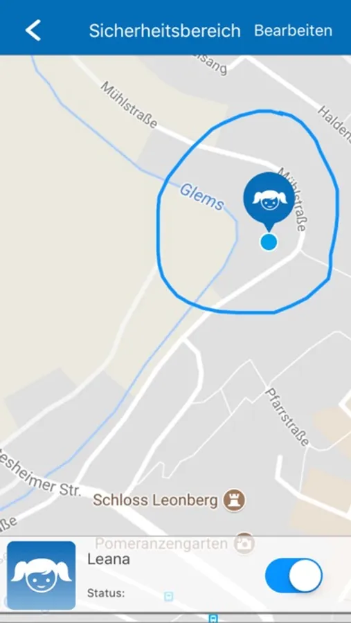 Weiterhin können Sie via App einen individuellen Sicherheitsbereich für Ihren kleinen Liebling festlegen. Sollte Ihr Kind diesen Bereich verlassen, erhalten Sie umgehend eine Nachricht.