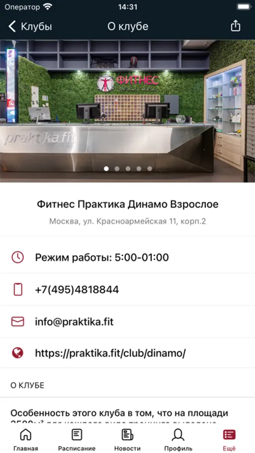 С помощью приложения вы можете следить за новостями, расписанием клубов, оперативно получать информацию об изменениях в расписании и специальных предложениях.