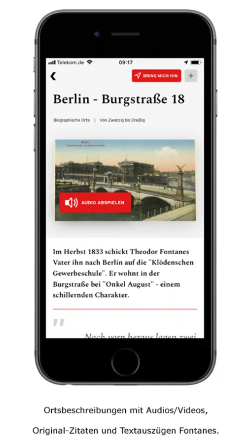 Lesungen und Videos zur mehr als 100 Orten, ergänzt durch Originaltexte