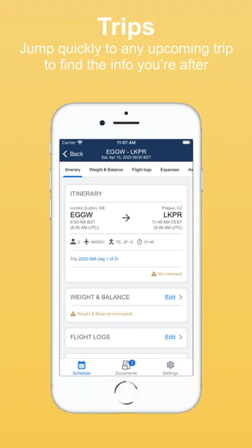 - Work offline and let the app sync your information to Schedaero when you go online again.