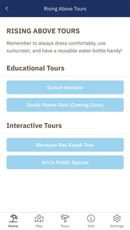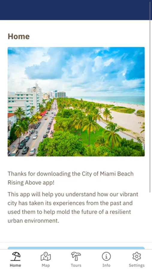 The Miami Beach Rising Above app is a great way to learn about our resilient, world-class city through self-guided tours. Learn about how Miami Beach adapts to a changing environment while highlighting the importance of its natural resources, vibrant arts, and unique culture.