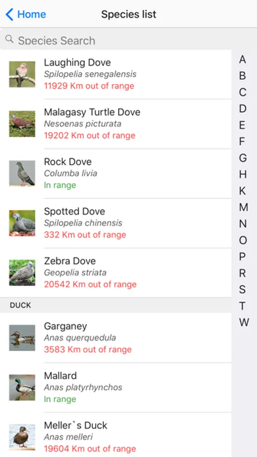 · Detailed information to show if the species is in range or provide the user with an approximate distance to the nearest point of its range