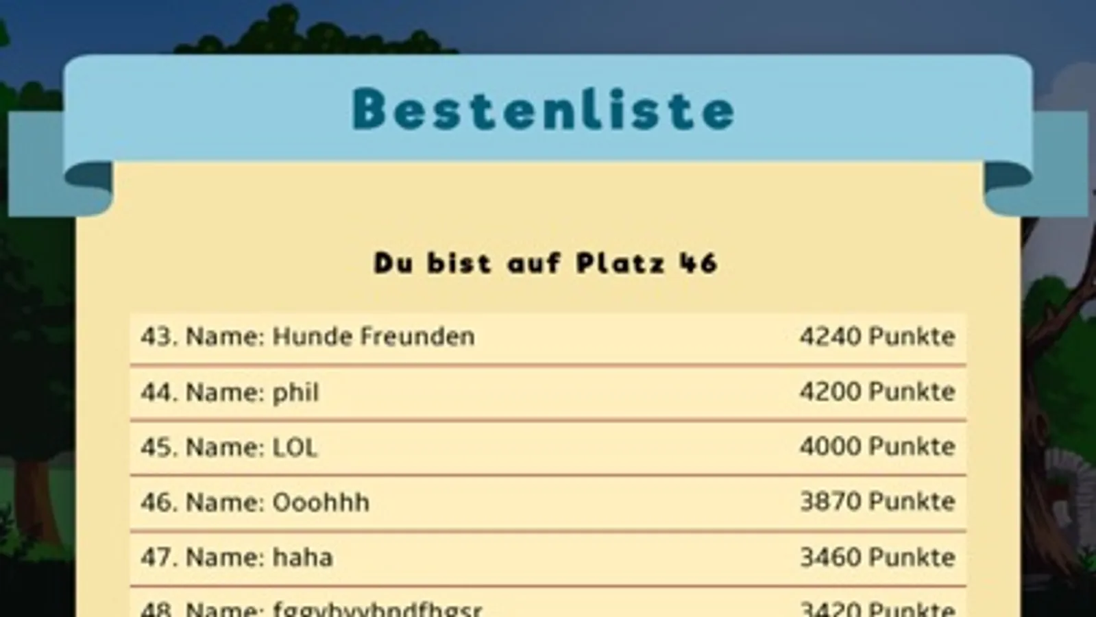 Nach drei erfolgreichen Runden kannst du dich in die Bestenliste eintragen!