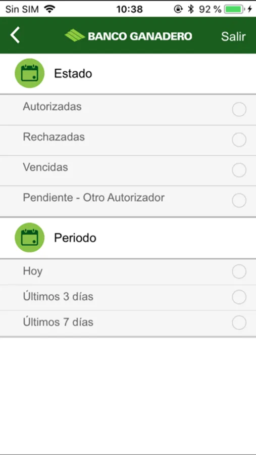 • Lista de Autorizaciones: Visualiza el listado de tus solicitudes por estado, hasta los últimos 7 días.