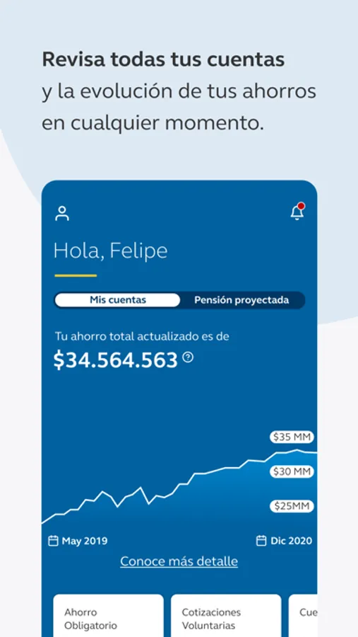 Contamos con varias herramientas para que puedas conocer toda la información sobre tus ahorros, rentabilidad y pensión. Usando nuestra aplicación podrás: