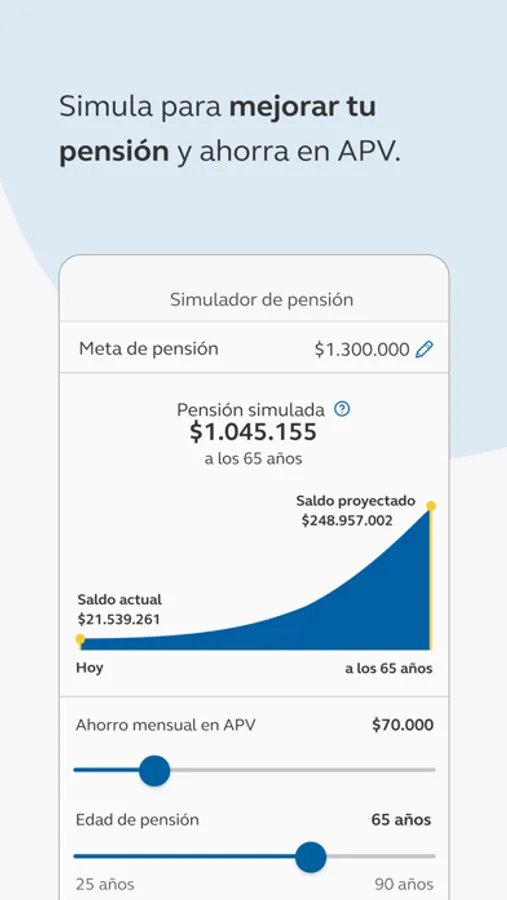 -Ahorrar para mejorar tu pensión. Con tu App podrás simular tu pensión y establecer un descuento mensual para ahorrar en APV.