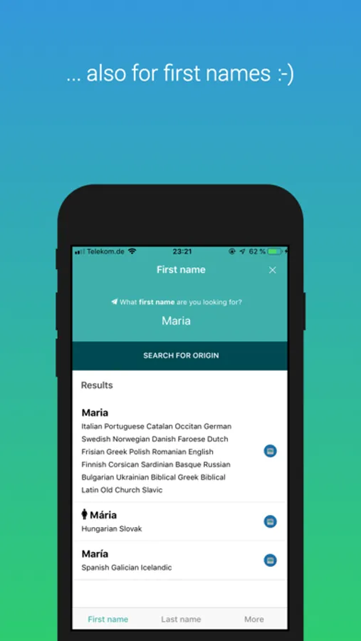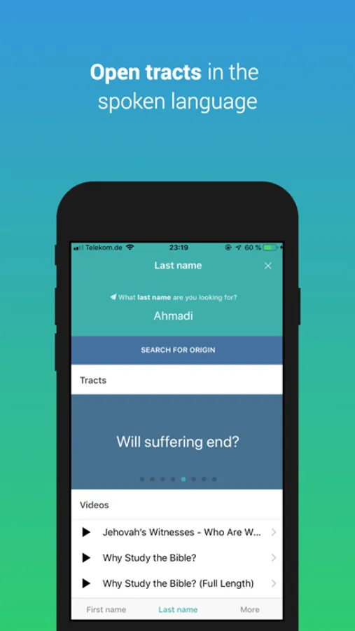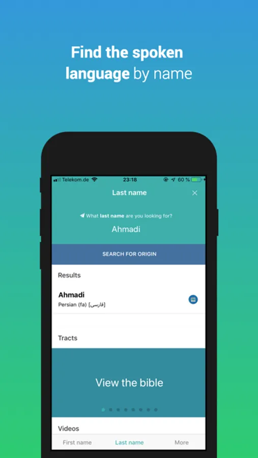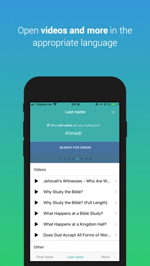 Origin Helper is an auxiliary tool for Jehovah's Witnesses to recognize the native language of people by their first or last name. The following functions are included: