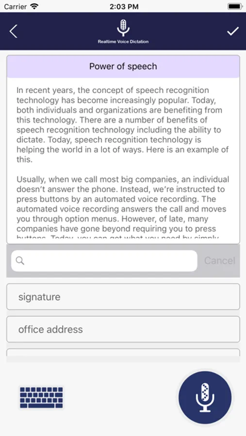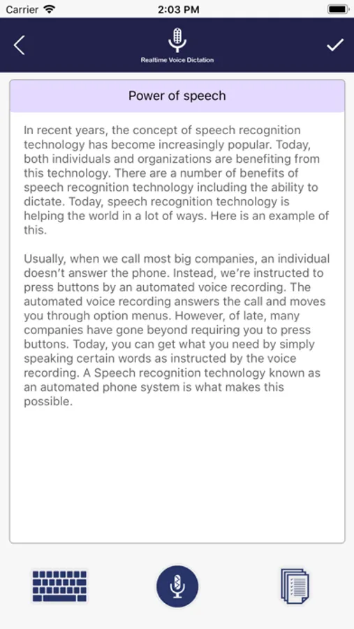 Take your notes through voice and easily share with your staff. dictation.app is a professional mobile dictation app. Easily dictate documents of any length, edit, format and share them directly from your iPhone or iPad all on the go.