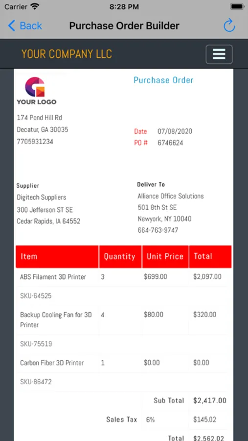 Purchase Order Builder is a powerful app that lets you create professional Purchase Orders in minutes. Easily Prepare digital Purchase Orders and email them directly to your suppliers in PDF format. Easily Order and Receive your POs in One Platform