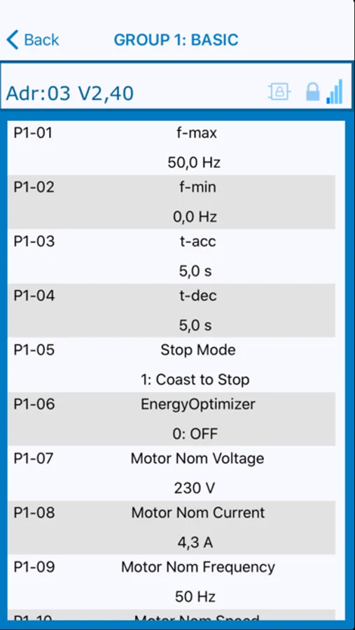 Monitor and Edit individual PowerXL parameters in real-time or transfer complete parameter sets between a PowerXL and the Smartphone.