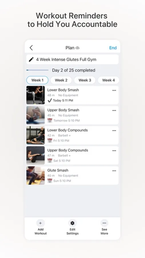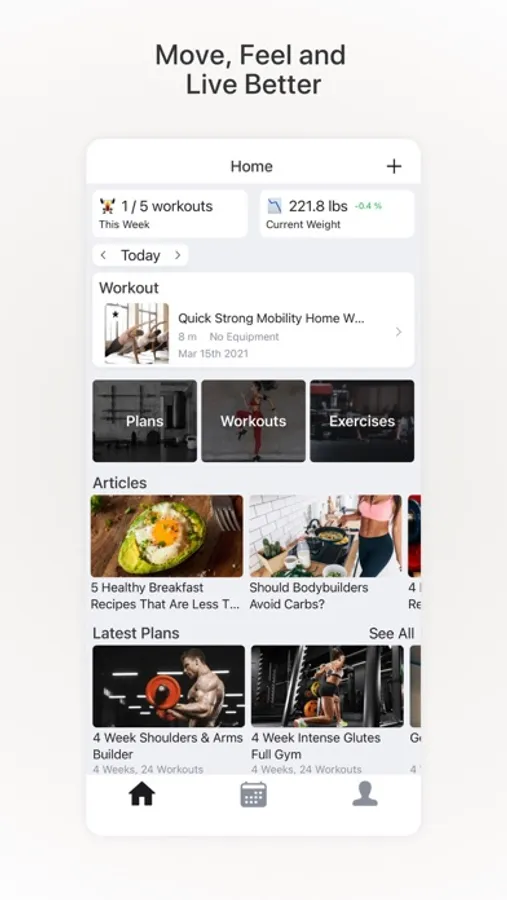 - Recommended workouts for every goal.