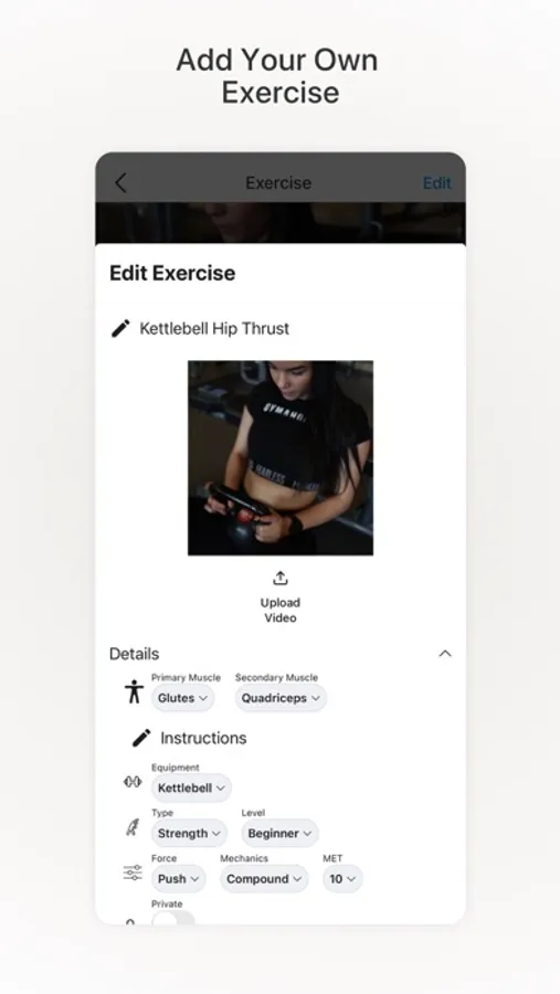 - Create circuits (supersets, dropsets, tri-sets...)