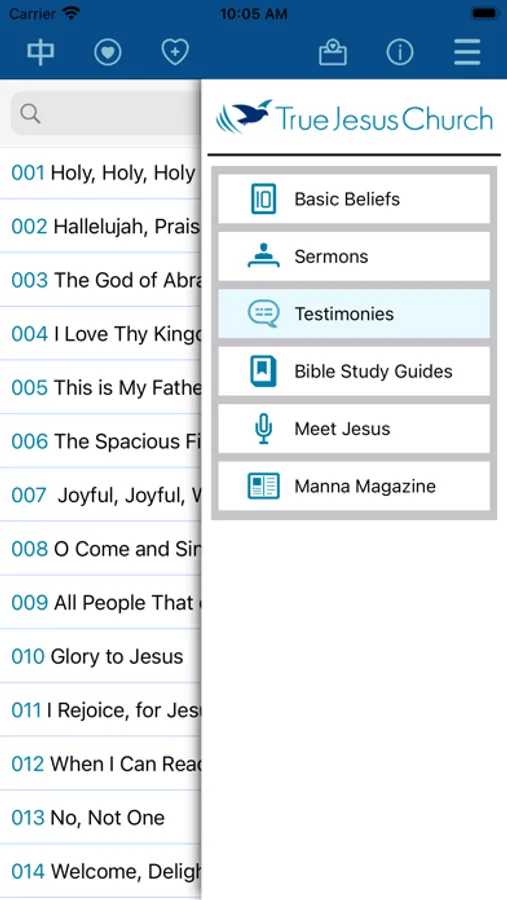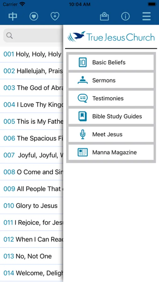 This is an official free version published by the International Assembly of the True Jesus Church, containing 525 hymns in both English and Chinese for offline listening. This App can play the most recent 200 online sermons and testimonies from the TJC eLibrary and let you download and store your favorite audio sermons and testimonies for later listening. Bible Study Guides and TJC-IA sites are also added for daily devotions.