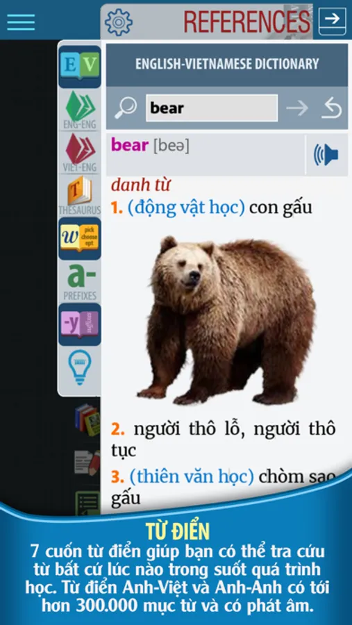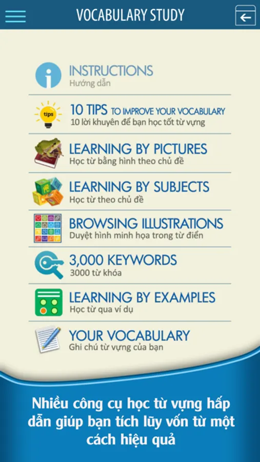 English Study PROMAX - ứng dụng giúp tự học tiếng Anh hiệu quả. Nó cung cấp tất cả các tư liệu và công cụ mà một người học tiếng Anh cần có: các công cụ giúp luyện nghe, nói, đọc, viết cùng với từ điển (Anh-Việt, Anh-Anh, Việt-Anh, Đồng nghĩa Phản nghĩa, ... với hàng ngàn hình minh họa và có phát âm từ), văn phạm (vỡ lòng và nâng cao) và các công cụ giúp tích lũy từ vựng hấp dẫn.