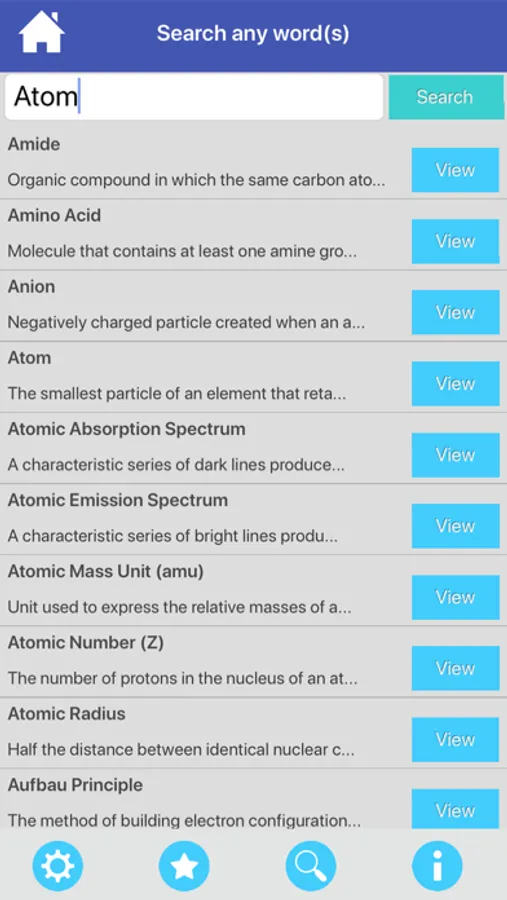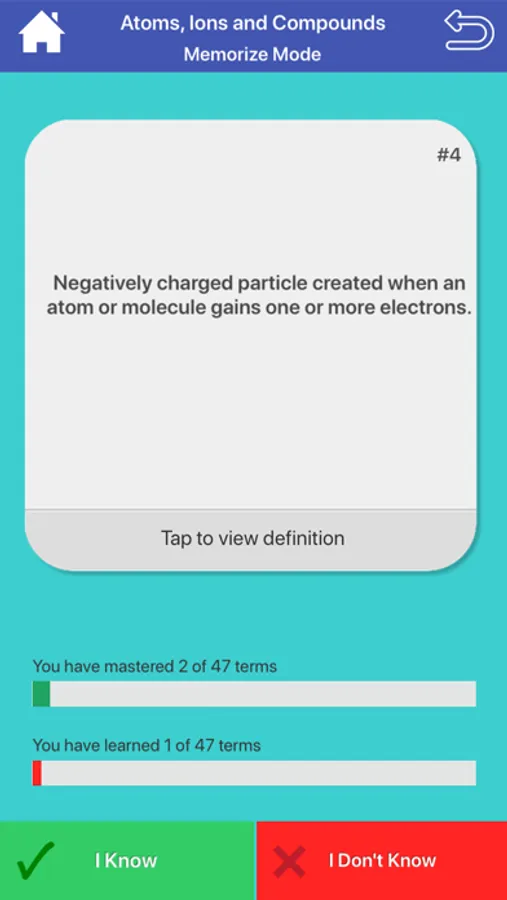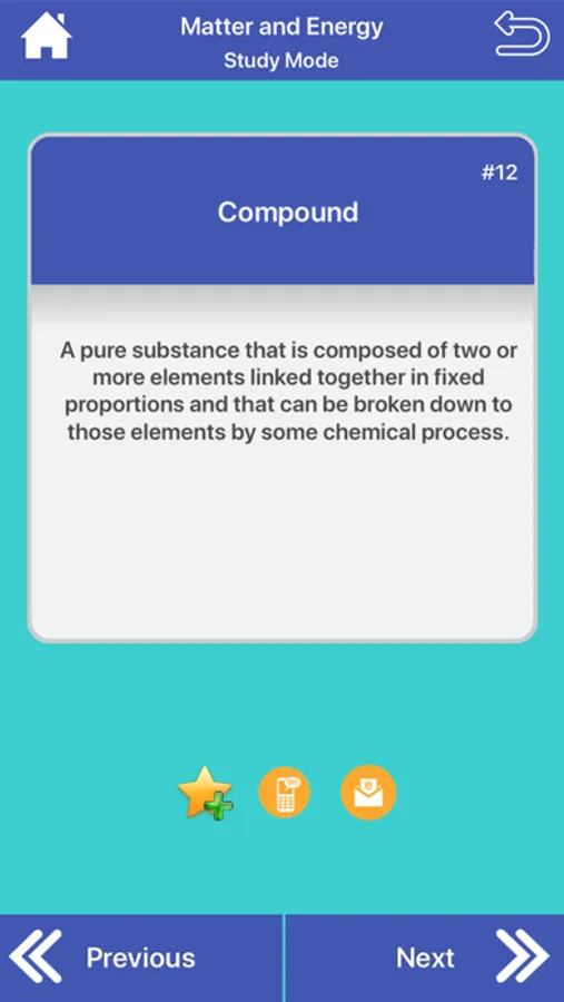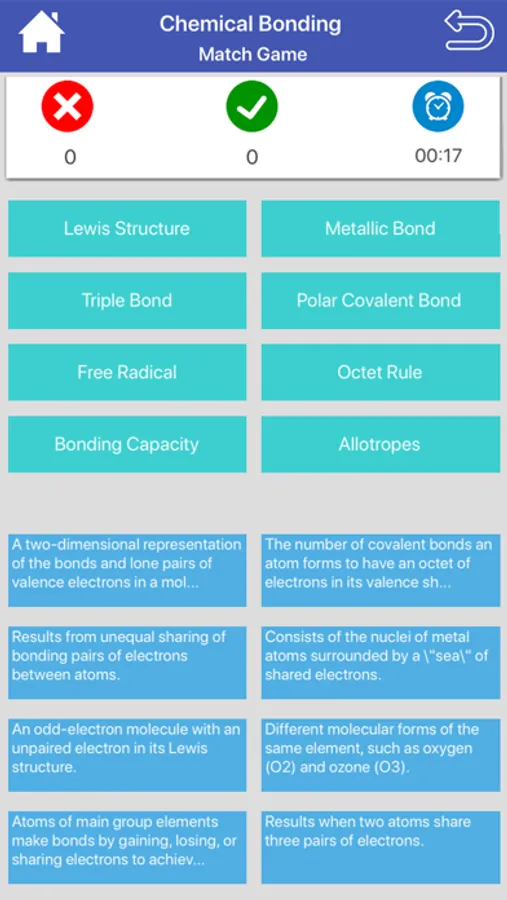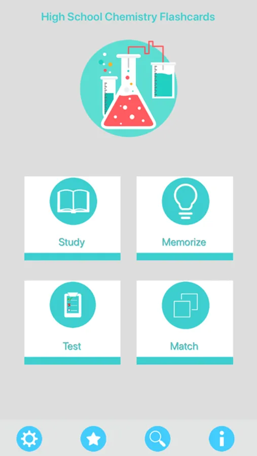 Our app contains study mode, memorize mode, test mode and match game for self learning and exam on the topics of general chemistry.