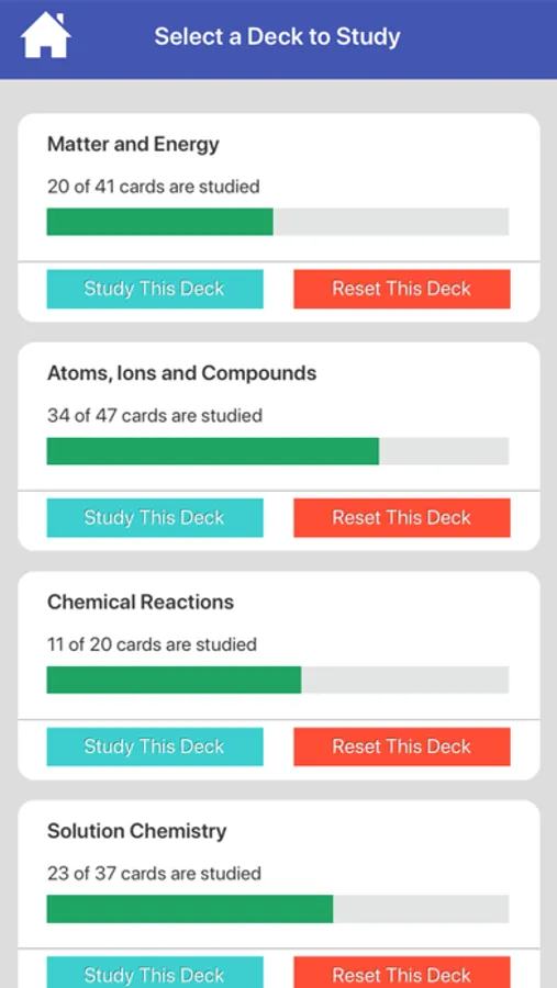 - All flashcards categorized by suitable chemistry concepts(as decks).