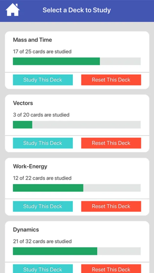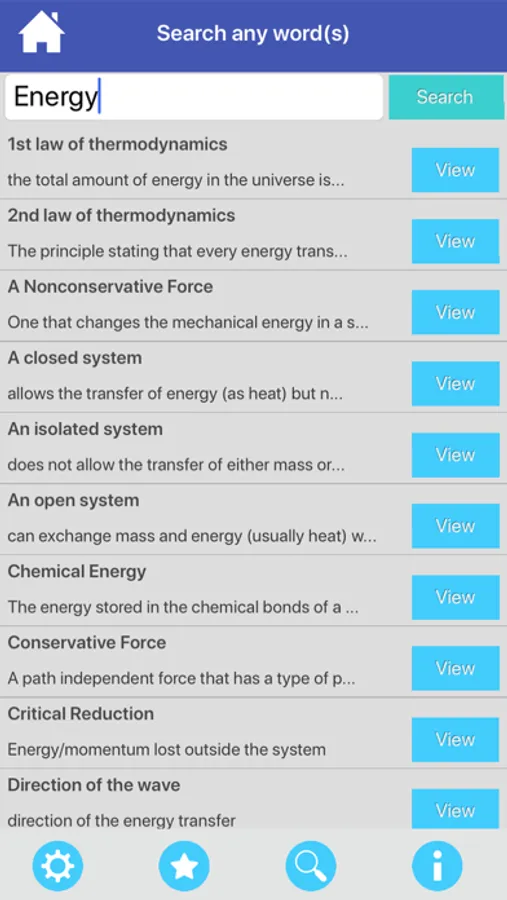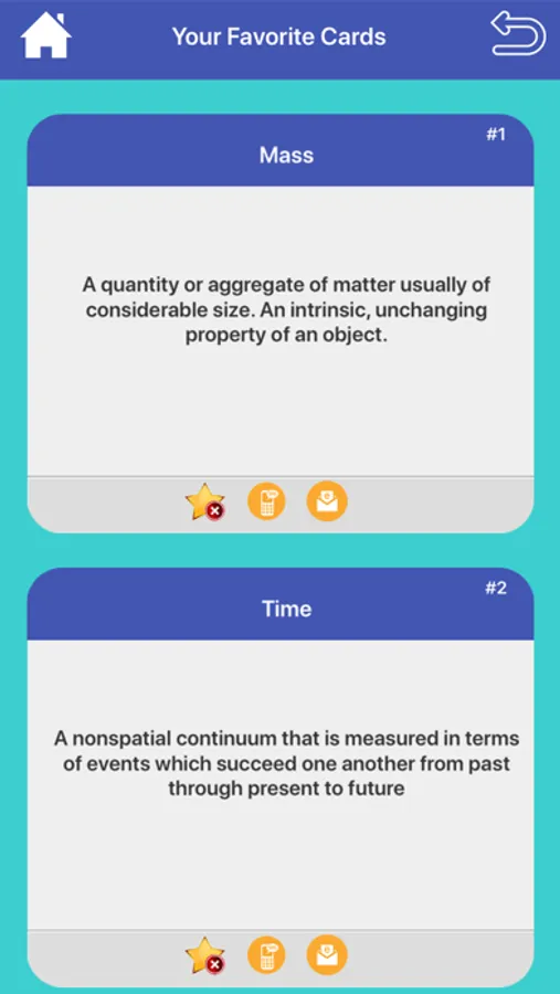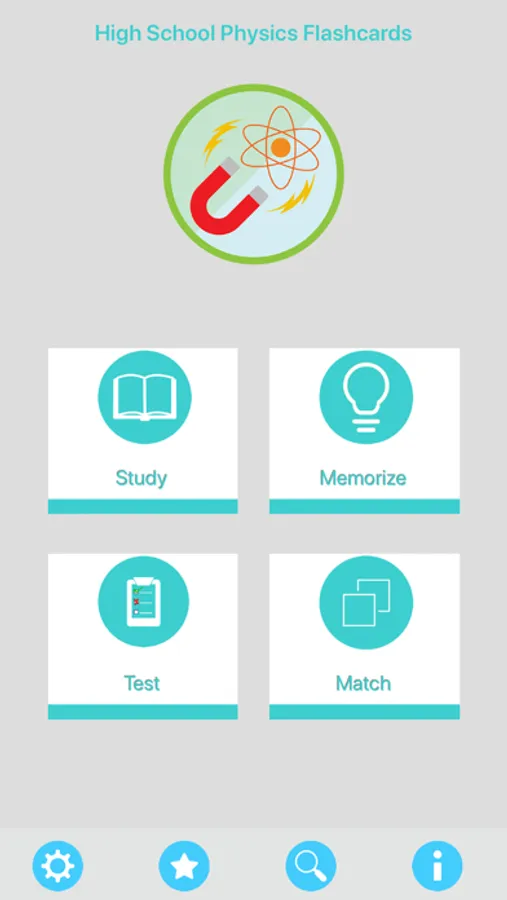 Our app contains study mode, memorize mode, test mode and match game for self learning and exam on the topics of general physics.