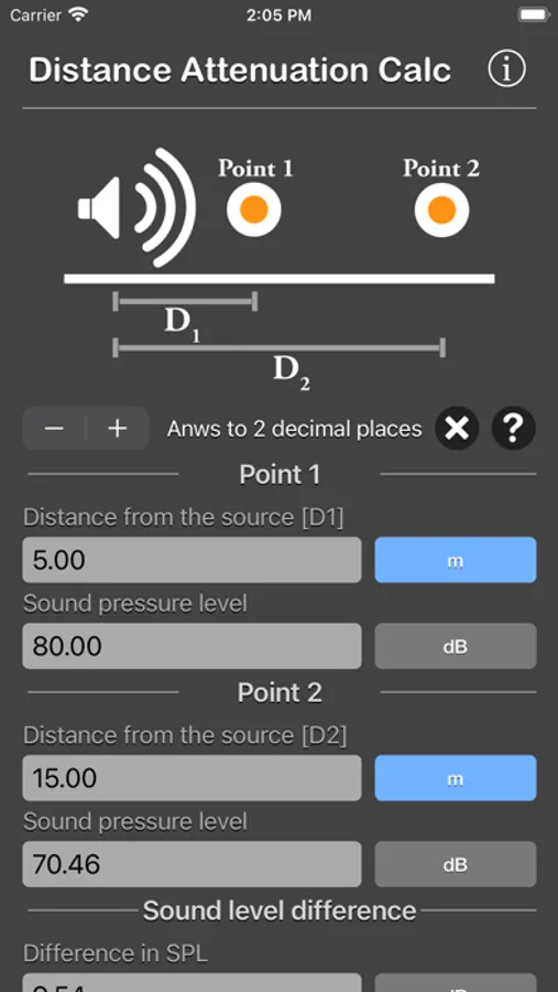 Distance Attenuation Calculator are physic/math calculator to find sound level in dB decreases with distance from the sound source fast and easy.