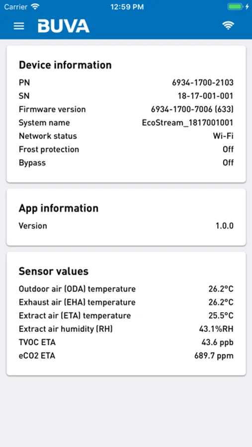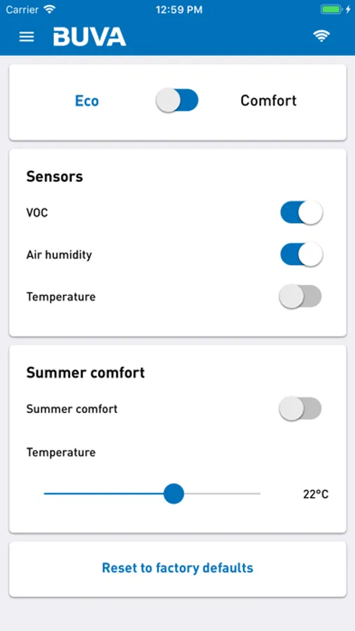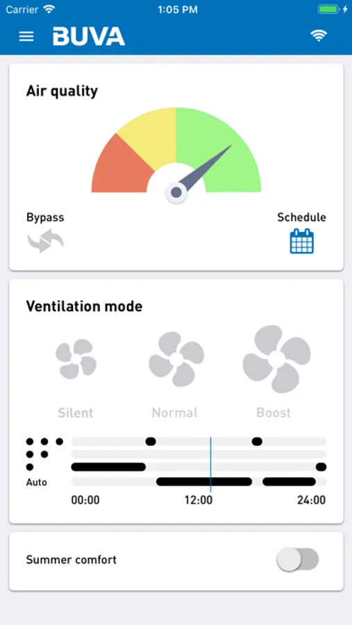 A revolutionary, intelligent and modular balanced ventilation system that takes advantage of heat recovery, that is what the BUVA EcoStream heat recovery unit is all about. The EcoStream app enables extensive control of the heat recovery unit. The app is equipped with an installer mode for setting up, adjusting and maintaining the EcoStream. In the user mode, a schedule can be programmed with a specific ventilation level per day and time. The resident can also check the air quality and the operation of the heat recovery unit.