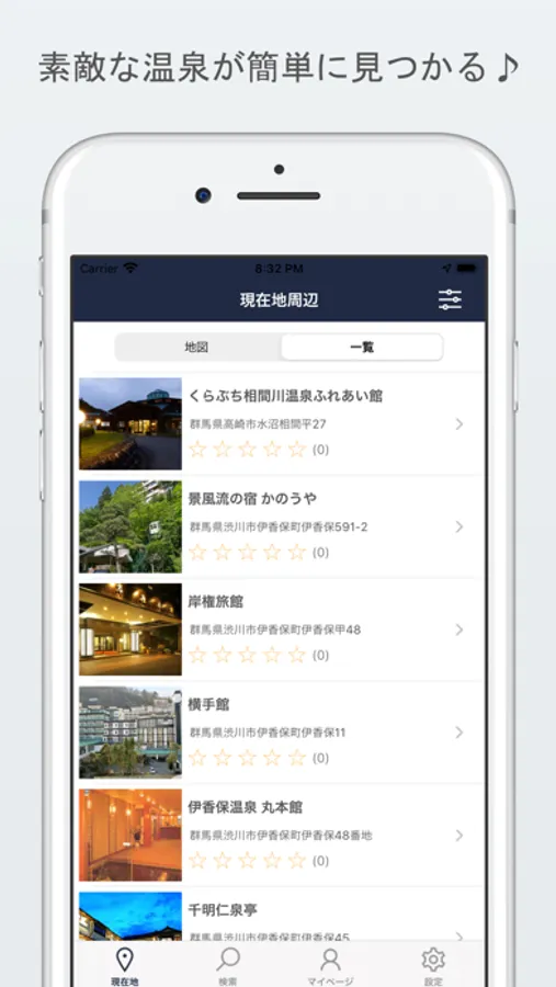 ・温泉の一覧表示