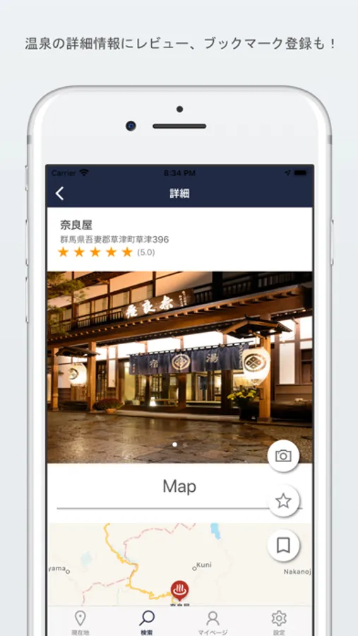 全国のユーザが投稿する写真から温泉の最新情報や評価も簡単に知ることができます。