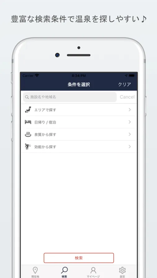 温泉検索は全国の銭湯・温泉を検索するアプリです。