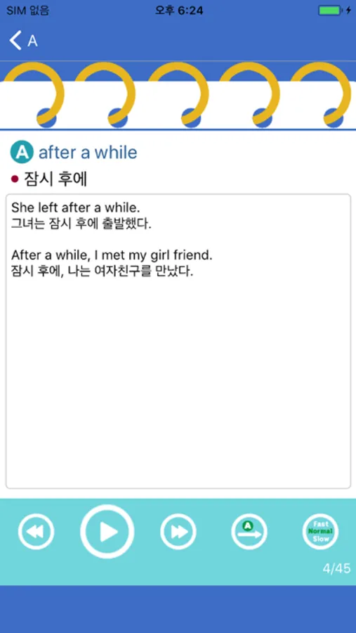 3. 영어 숙어, 뜻을 읽어줍니다.(TTS를 이용함.)