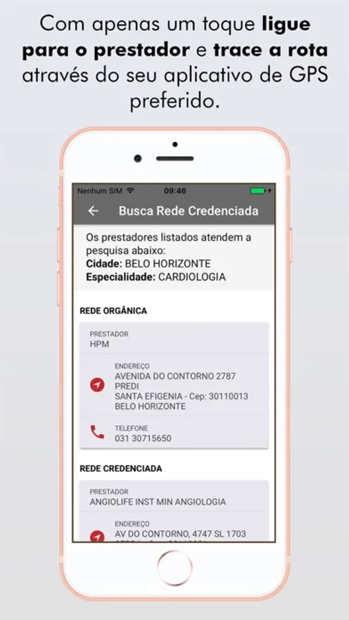 - Ligação instantânea: Faça contato telefônico imediatamente com nossas Unidades e com a Rede credenciada com apenas um clique em cima do número.