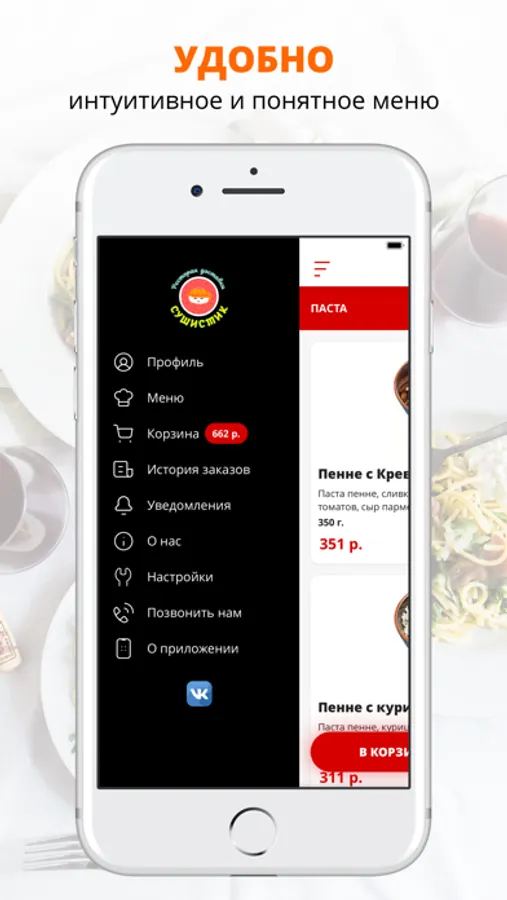 Воспользуйтесь нашим удобным приложением для заказа еды на дом или в офис!
