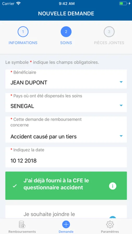 CFE FDSL est une application permettant de soumettre une demande de remboursement de soins dispensés à l'étranger, tout en y joignant ses justificatifs.