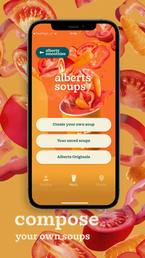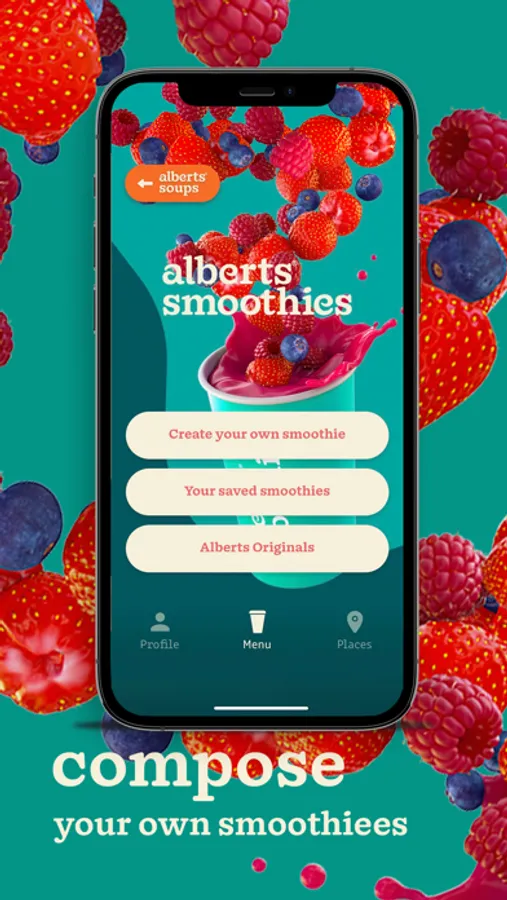 Alberts developed the Alberts One, the world's first blending robot that uses 100% natural ingredients (fruit, veggies, plant-based drinks and water) to prepare fresh smoothies, hot soups and vegan shakes.