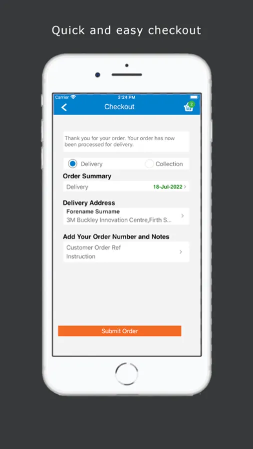 4. Place your order, then click and submit (partial orders can also be saved in the cloud to finish at a later date, on any compatible device)